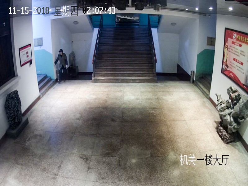 视频监控显示:11月15日凌晨1点56分,两名犯罪嫌疑人从南办公楼一楼破窗进入,凌晨2点03分进入老办公楼大厅,凌晨2点40分撬开财务部出纳室的防盗门,凌晨2点54分从老办公楼逃离,进入南办公楼。凌晨3点03分犯罪嫌疑人到达出纳室后窗外。